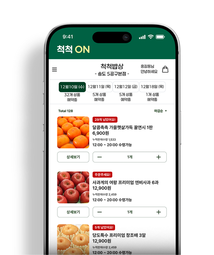 자체 플랫폼 척척ON 개발로, 카카오톡 오픈채팅 주문의 운영 한계를 해결하였습니다.